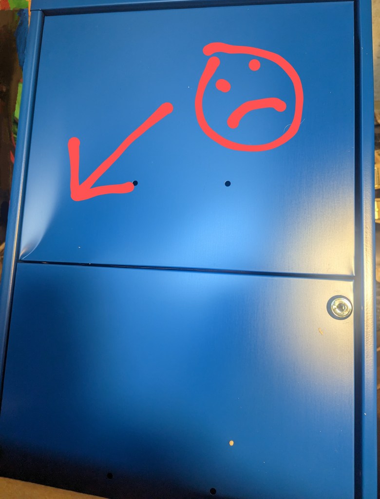 that I completely blocked our front hall trying to get it out of its box, only to discover that it arrived with a big dent in it 😡